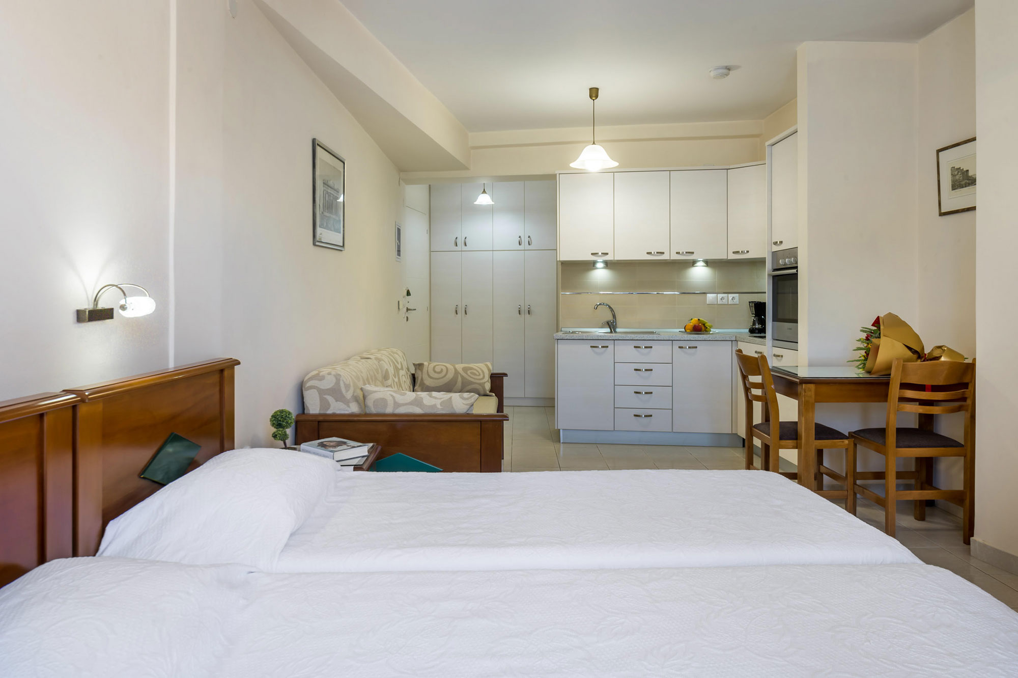 - Bed Type: Queen-size bed, Sofa bed