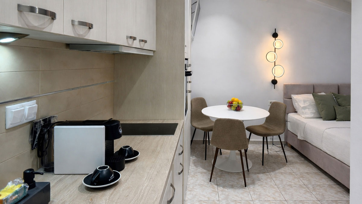 Ideal for couples or solo travelers, this modern third-floor apartment features a king-size bed, private terrace, fully equipped kitchen, fast Wi-Fi, air conditioning, and smart TV. Enjoy comfort, garden views, and easy access to restaurants, shops, and local attractions in the heart of Argostoli.